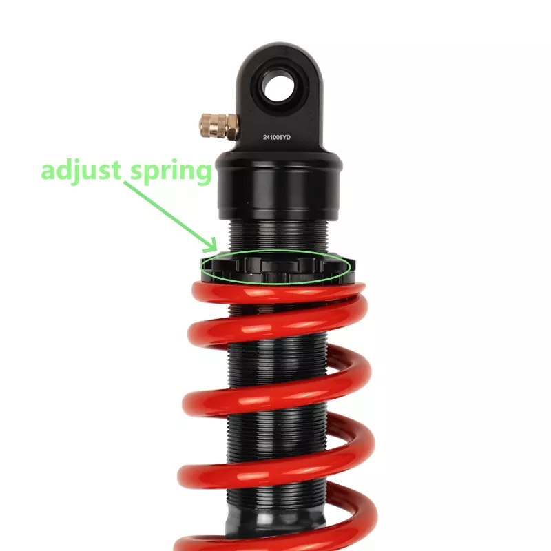 Iskunvaimennin sisältää säädettävän jousen esijännityksen, jonka avulla ratsastajat voivat muokata, säätää alas tehdäksesi jousesta kovemman, säätämällä ylöspäin tehdäksesi jousesta pehmeämmän