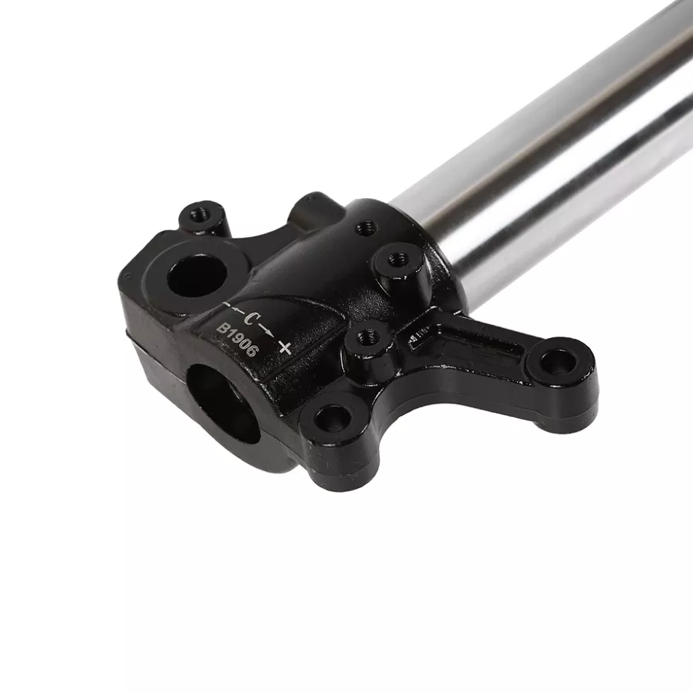 Tämä kestäviksi suunniteltu etuhaarukka suojaa kriittisiä komponentteja lialta ja roskilta ja säilyttää luotettavuuden ankarimmissakin olosuhteissa. Sen vankka rakenne lisää vääntöjäykkyyttä ja tarjoaa vertaansa vailla olevan ohjaustarkkuuden ja hallittavuuden. Navigoitpa sitten radalla ahtaissa mutkissa, valloittaessasi jyrkkiä off-road-polkuja tai risteilyt tasaisilla moottoriteillä, tämä jousitusjärjestelmä mukautuu vaivattomasti tarpeisiisi.